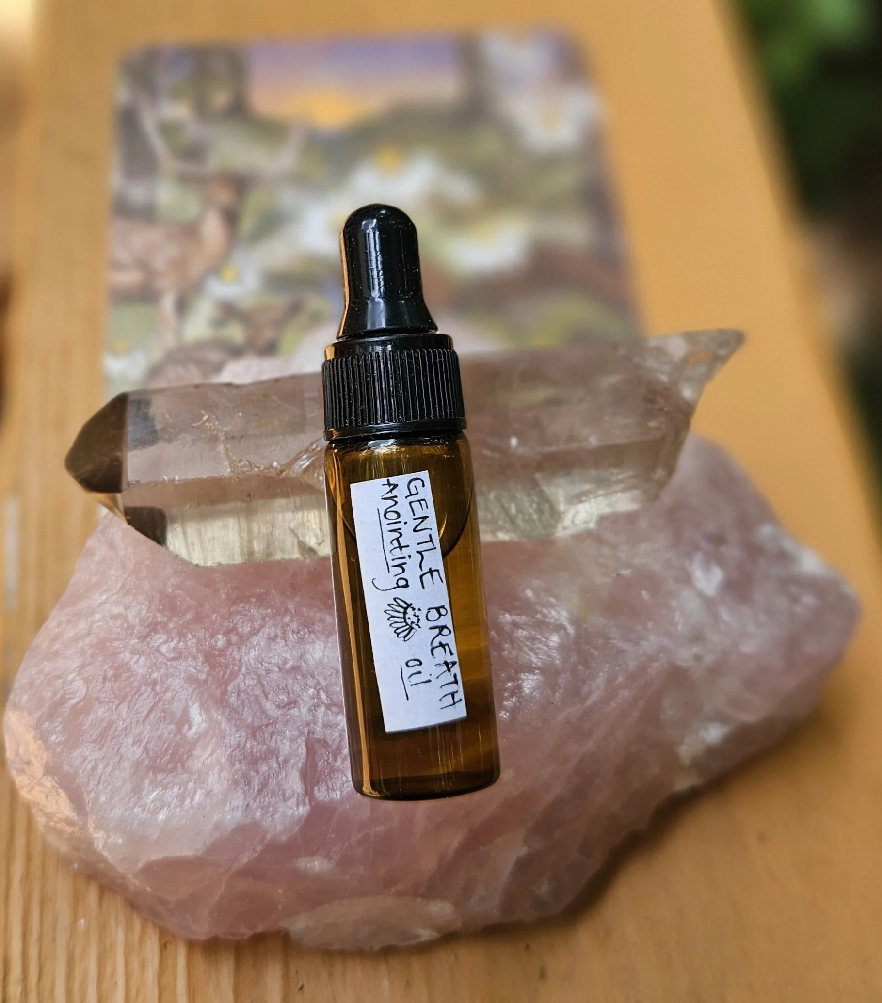 Handcrafted Jojoba oil infused with Helichrysum, Rose, and Chamomile Essential oils, as well as Quartz, Amethyst, and Rose Quartz crystals. Made whilst listening to 174 HZ and Healing Whale songs. This blend is perfect for use in rituals, healing sessions, moments of grounding, to put on your altar, or even when you just want to deeply breathe and smell something lovely!